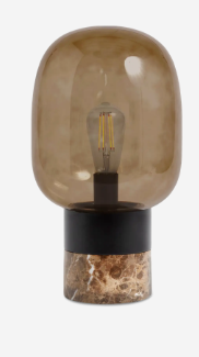 Lámpara de mesa Stockholm, vidrio color marrón, base de mármol negro/marrón. A36xØ20cm.